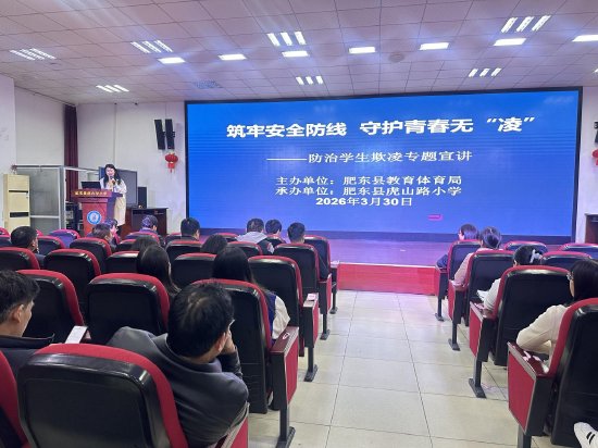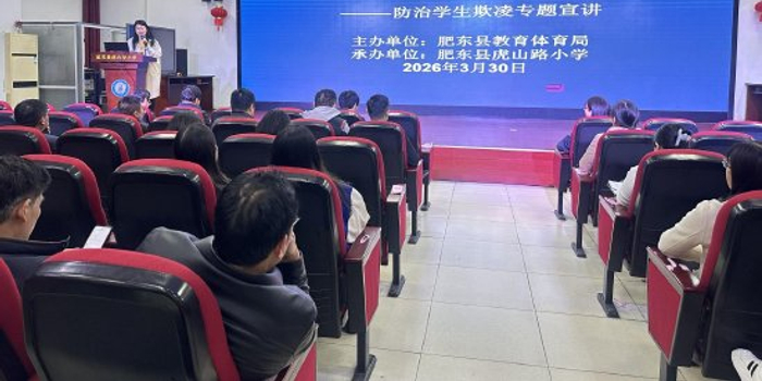关注为深化校园安全教育,2026年3月30日,肥东县虎山路小学承办了由县教体局主办的防治学生欺凌专题宣讲。店埠学区中心学校党委委员、副校长汪小玲受邀主讲,作题为“筑牢安全防线 守护青春无‘凌’”的专题讲座。