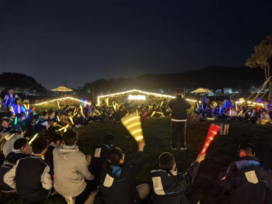 晚餐后,一场热闹的篝火晚会点燃研学氛围。同学们围坐篝火旁,或演唱经典曲目,或分享研学心得,欢笑声、歌声与掌声交织在一起,回荡在夜空。这场晚会不仅是一天行程的休止符,更是同学彼此熟悉、增进情谊的温暖时刻。