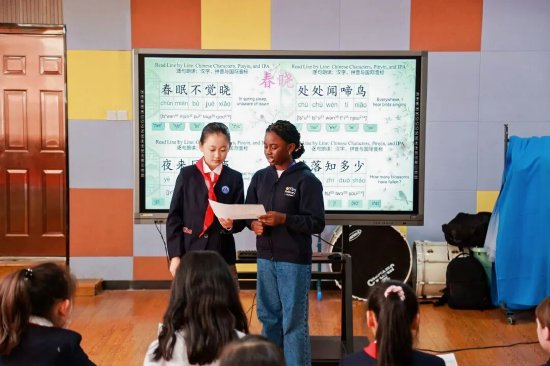“春眠不觉晓,处处闻啼鸟……”在小老师的教导下,他们用手势比划着四种声调,努力讲出中文的平平仄仄。当共同以歌曲呈现出《春晓》时,在场的所有人都竖起了大拇指,表示称赞。