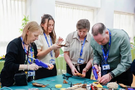 20位英国友人呈现出让人惊叹的20种创意满满的“豆荚娃娃”,无论老师、学生,他们展现出的是属于他们国家的“松弛”“文化”“感知力”。从了解豆荚,到深知其中的含义,再到动手制作赋予他新的意义,这一切在他们看来是美好、欢乐的。“小老师”的出场,纯英文交流,更让他们眼前一亮。