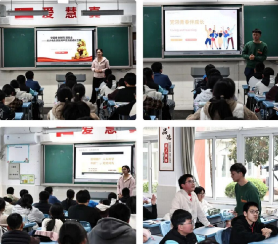 活动中,安徽建筑大学研究生党员程文静以《学雷锋,树新风,跟党走——从少先队员到共产党员的成长之路》为题,针对初中生正处于政治身份转变的关键阶段,系统讲解了少先队员、共青团员与共产党员之间血脉相承的关系,并通过提问互动,引导同学们深入思考雷锋精神的时代内涵。随后,研究生党员曹辉以《党领青春伴成长》为主题,分享了大学期间丰富多彩的学习生活,介绍大学课堂的趣味性与实践活动的魅力,以趣味问答激发同学们对未来校园生活的向往,鼓励大家将当下的努力与长远的梦想相结合。