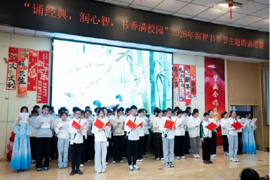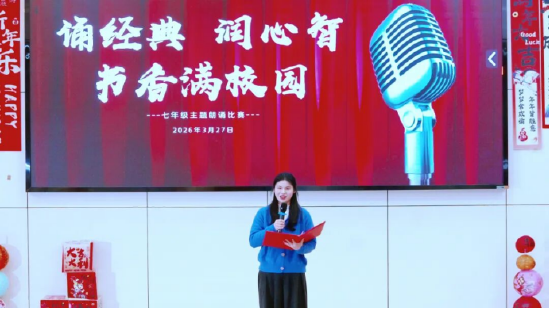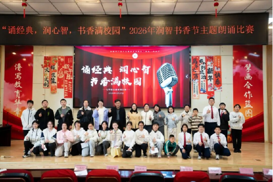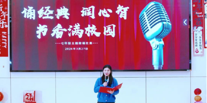 此次朗诵比赛是学校“润智书香节”系列活动的重要组成部分,不仅为七年级学生提供了展示自我、锻炼表达的平台,也进一步推动了书香校园建设,激发了学生对经典文学的阅读热情,提升了学生对经典文学的鉴赏能力。学校将继续以丰富多样的文化活动,引导学生在诵读中润泽心智,在经典中汲取成长力量。(耿健)