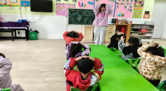 各班教师提前通过绘本故事、动画科普、情景模拟、儿歌口诀等幼儿喜闻乐见的形式,开展应急安全主题教育,细致讲解地震逃生要点,示范弯腰抱头、靠墙有序撤离等规范动作,提前做好幼儿心理疏导,消除幼儿对演练的恐惧情绪,让每一位幼儿熟知逃生流程与注意事项,为演练的顺利开展筑牢基础。