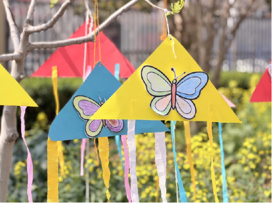 小班幼儿以感知为主线制作纸鸢,老师带领小朋友们认识纸鸢的形状,再指导小朋友用小剪刀,沿着画好的线条,小心翼翼地裁剪纸涂色,一只只软萌的纸鸢就好啦!小朋友们将做好的纸鸢,轻轻粘贴在自己涂好颜料的卡纸上,一份充满春日色彩的清明手工就完成啦。简单的手工活动,让孩子们在剪、涂、粘的乐趣中,轻松了解清明习俗,感受传统节日的美好。
