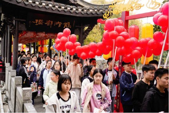 同学们漫步古街,聆听导游讲述“三河大捷”的历史风云,感受千年古镇的沧桑与荣光。随后,一场热闹的鱼龙游行将气氛推向高潮——五彩斑斓的鱼灯在人群中穿梭翻腾,锣鼓声、欢呼声交织在一起。同学们近距离欣赏非遗表演,有的还受邀参与互动,亲手舞动鱼灯,在欢腾的氛围中感受传统民俗的独特韵味。非遗文化的深厚底蕴,让同学们对中华优秀传统文化有了更直观、更深刻的认识。