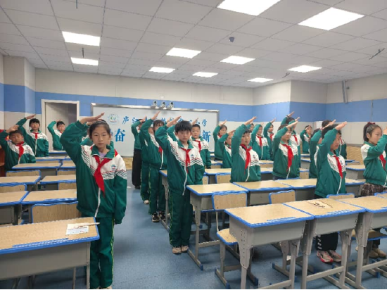 庄严的出旗仪式拉开了本次队会序幕,队员们昂首挺胸,面向队旗敬礼,嘹亮的《中国少年先锋队队歌》响彻会场,展现出新时代少先队员朝气蓬勃的精神风貌。