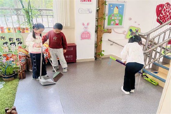 活动中,孩子们化身“小小清洁员”,在老师的引导下积极参与力所能及的劳动。他们认真擦拭桌椅、整理玩具、清扫地面,在实践中体验劳动乐趣,锻炼自理能力,逐步养成爱清洁、讲卫生的良好习惯,生动展现了“五乐幼儿”阳光向上、勤劳向善的精神风貌。