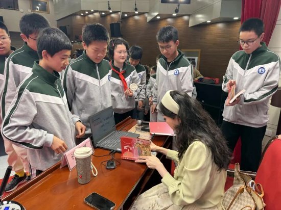 在互动有奖环节,同学们踊跃举手讨论,气氛热烈。许诺晨老师向回答正确的同学赠送了明信片,并笑着告诉大家“生活就是最大的灵感库,每天在校园里发生的故事—一场田径接力赛、同学间的一次争吵和好都是最好的写作素材。只要做个有心人,永远不愁没东西写。”。