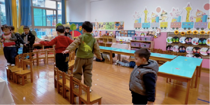 总园党员教师张晓月结合小班幼儿年龄特点与发展需求,以长征精神为引领,创新设计“爬雪山、过草地”红色主题游戏。 游戏中,孩子们化身“小小红军”,开启了充满挑战的“长征之旅”:有的小朋友化身“小战士”,手脚并用、勇敢地“爬过雪山”,克服重重困难;有的小朋友小心翼翼地“走过草地”,张开双臂保持平衡,一步步坚定前行;还有的小朋友互相加油、彼此搀扶,在同伴的鼓励下完成挑战,充分展现了小班幼儿的勇气与团结。 此次红色游戏活动精准契合小班幼儿肢体平衡能力、规则意识与社会性发展目标,让孩子们在钻、爬、走的趣味运动中锻炼体能、提升动作协调性,在沉浸式体验中感受红军战士的坚韧与伟大,让红色基因在幼小的心灵中生根发芽。