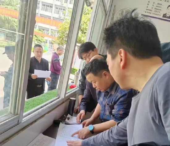 会后,胡敬峰校长带领校领导班子、中层干部及各年级组长深入校园重点区域开展实地检查。检查组首先来到各门岗室,仔细检查安保“八件套”是否配齐配全,一键报警系统是否正常运行,出入人员登记是否填写规范,门岗环境卫生是否整洁有序。随后,检查组走进学校食堂,认真查看食品卫生状况、消防设施配备情况,逐一核对食堂从业人员健康证是否在有效期内,并详细了解“明厨亮灶”工程运行情况。最后,检查组对校园各处进行了拉网式排查,全面查找可能存在的各类安全隐患。