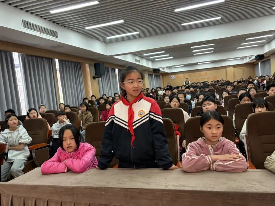 讲座现场,闫警官结合小学生的年龄特点和日常出行实际,用真实案例+动画演示+互动问答的方式,将枯燥的交通规则变得生动易懂。她向学生讲解了出行时应遵守的交通规则和交通安全知识,告诫学生们行车、走路时,要留心观察路面情况,做到“一看、二慢、三通过”,按交通信号灯及交通标志、标线所指示的方向行走,不闯红灯、不随意横穿马路、不在道路上嬉闹玩耍。教育引导学生自觉遵守交通规则,养成良好的安全出行习惯。孩子们认真聆听、踊跃举手,在轻松愉快的氛围中,将“一盔一带”“红灯停、绿灯行”“不在马路上追逐打闹”等安全要点牢牢记在心间。