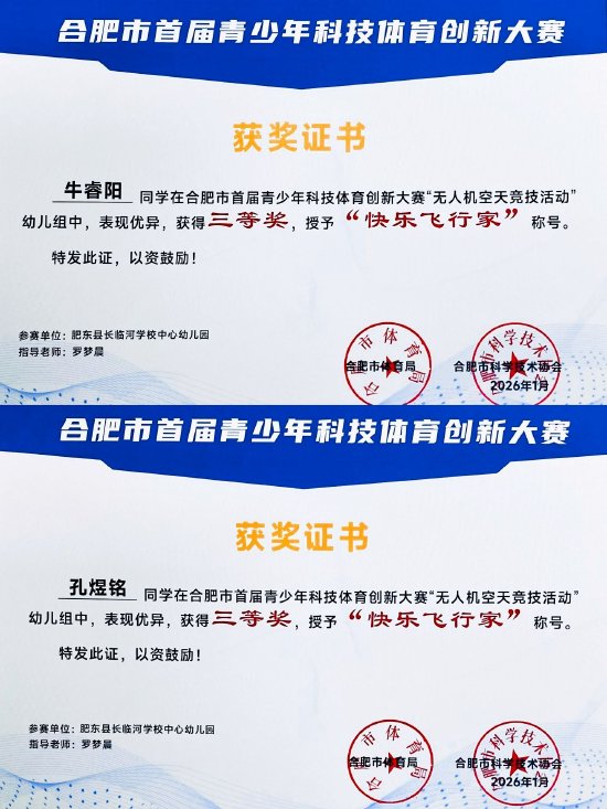 关注在合肥市首届青少年科技体育创新大赛无人机空天竞技活动中,长临河学校中心幼儿园的六名参赛小选手表现出色,凭借扎实的操控能力与稳定的发挥,共收获一等奖1名、三等奖5名的优异赛果,为园所再添荣誉。