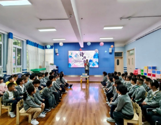 活动现场,两大班级展开对决,以看图猜诗为核心展开趣味比拼。孩子们凝神观察画作,快速联想诗词,踊跃举手、自信抢答,清脆的诵读声回荡在校园中,句句饱含对传统文化的喜爱。大家你追我赶、默契配合,既展现了扎实的诗词积累,又在团队竞技中收获快乐、增进友谊,在沉浸式体验中领略中华经典诗词的独特魅力。