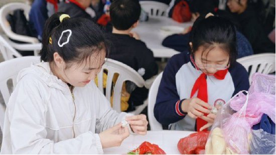 午后的小满田塍,是孩子们的欢乐天地。坐上穿梭在春光里的小火车,风里都是泥土与青草的清香;稻田里摸鱼撒欢,溅起的水花里满是少年的笑声;亲手制作蒿子粑粑,揉面、包馅、蒸熟,指尖留下的,是春日的清甜与劳动的满足。在田野间奔跑,在泥土里探索,孩子们放下书本,拥抱自然,在“接地气”的体验中,感受着劳动的乐趣与生活的美好。