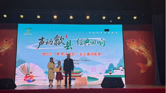 关注近日,歙县第二届“声动歙县 经典回响”亲子诵读比赛圆满落幕。全县20组优秀家庭同台竞技,以诵读致敬经典,以亲情传递力量。歙县行知小学401班蔡菀柔同学与妈妈压轴登场,凭借作品《英雄》的深情演绎,最终以95.892分的高分脱颖而出,勇夺全场第一名,荣获本次比赛唯一的一个一等奖。