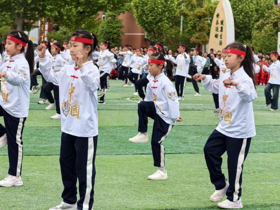 各方阵与班级代表队有序退场后,精彩的体艺特色展演正式登场。《向阳腾飞》以昂扬的姿态展现了少年向阳而生、奋勇向上的力量;《醒狮》表演,锣鼓铿锵、狮舞灵动,传递着传统文化的魅力与活力;《一路花开》,用优美的韵律展现了少年成长路上的美好与希望;健身操《本草纲目》,节奏明快、活力满满,展现了师生健康向上的精神面貌。