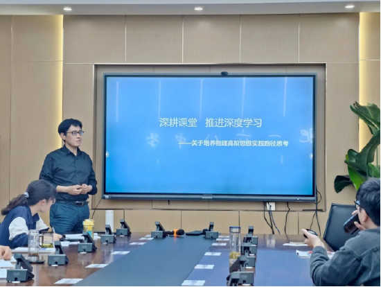 随着AI技术与教育教学的深度融合,廖荣鑫老师带来《AI赋能课堂教学》专题分享,展示了如何利用AI工具优化教学环节、创设探究情境、辅助思维训练,为高阶思维培养注入了科技动能。随后,陈晨老师以《高阶思维在课堂教学的实践路径—思维的跃迁》为题,结合牛顿运动定律的课例,讲解了如何通过问题链设计、探究活动引导学生实现从低阶思维到高阶思维的跨越;孙中杨老师则从策略层面进一步深化,分享了课堂教学中培养学生分析、评价、创造等高阶思维的实用方法。