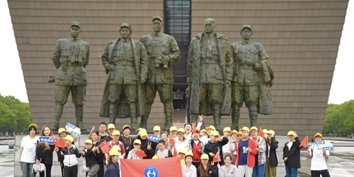 上午9时许,载着孩子们的大巴车缓缓停在纪念馆广场。尽管雨水打湿了地面,宝贝亲的孩子们却个个精神抖擞。患有唐氏综合征的小欣(化名)紧紧攥着手中的小黄帽,跟着老师的指引,一步一步走向总前委群雕。她抬头望着五位革命先辈的青铜雕像,小手不自觉地抚过胸前的国旗贴纸,眼神里满是好奇与崇敬。