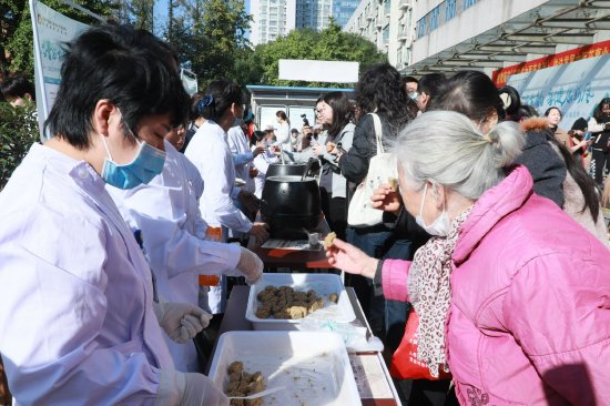 今年,医院在活动现场还推出了根据霜降节气特点特制的桂花板栗饼、山药栗子羹、石斛老鸭汤等养生药膳供市民免费品尝。更有专业药剂师现场讲解膏方的制作工艺、功效作用及服用方法,让市民可以在活动中品尝到美味的膏方,感受膏方独特的口感。“原来养生也可以这么享受,回家就试着做给家人吃。”市民陈先生赞不绝口。