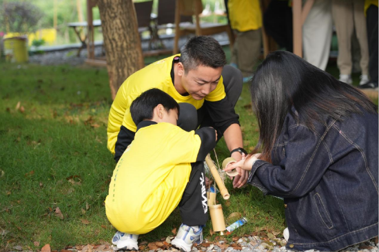 亲子组则注重趣味与文化体验,每组家庭需在约3公里的内环跑途中,完成3个特色打卡任务:在“竹编小能手”点向非遗艺人学习简易竹编;参与“竹文化知识问答”增进了解;进行“竹林寻宝”,识别并收集不同竹叶。集齐印章即可在终点兑换奖励,让运动成为一场生动的自然文化课堂。