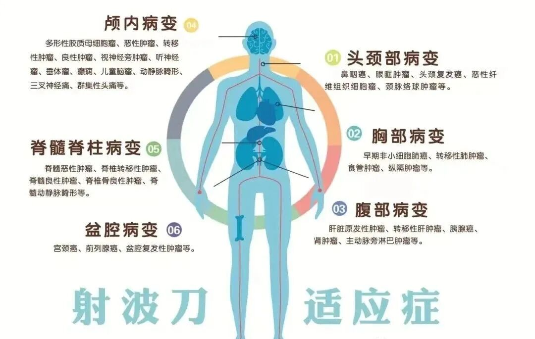 尤其适用于颅内肿瘤、头颈部肿瘤、脊柱肿瘤、肺部肿瘤、肝癌、胰腺癌、前列腺癌等全身多个部位的实体肿瘤,包括一些手术难以处理或位置刁钻的肿瘤。