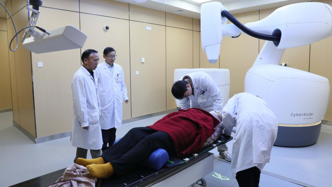 射波刀治疗具有无创、无痛、无麻醉、疗程短、恢复期短等特点,单次治疗时间为30分钟—40分钟,在治疗过程中无须限制呼吸,有效提升了患者的舒适度。