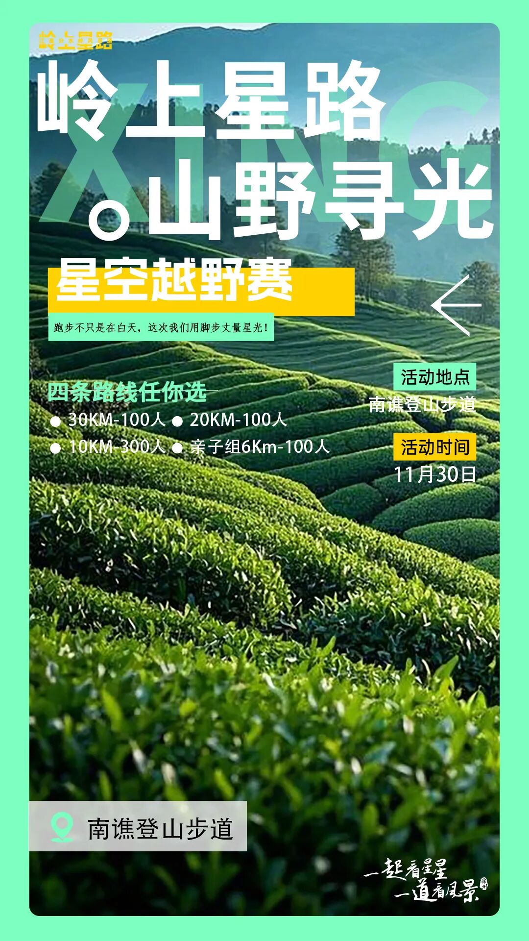 跑步不只是在白天,这一次,我们用脚步丈量星光!30KM/20KM/10KM/亲子6KM,四条路线任你选,穿梭在南谯山野间,做一场“追光的人”。