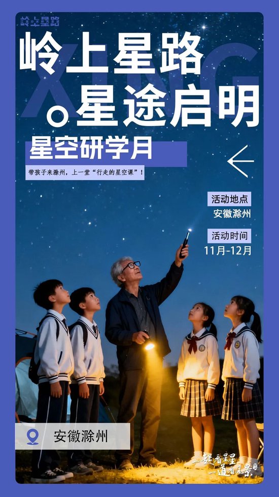 带孩子来滁州,上一堂“行走的星空课”!整个12月,我们面向长三角家庭与学校,推出星空主题研学活动,让孩子的童年,不止有课本,还有整片星空。