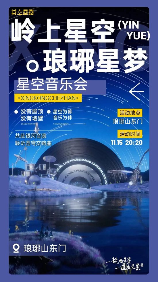 当音乐遇上星空,当夜风伴着歌声…我们邀请你在琅琊山下,听一场露天Live。没有屋顶,没有墙壁,只有星空为幕,音乐为伴。
