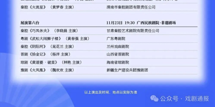关注为绽放戏曲艺术的千年风华,助力当代创作英才竞展风采,由文化和旅游部艺术司、自治区党委宣传部、自治区文化和旅游厅、南宁市人民政府主办,广西戏剧院、南宁市文化广电和旅游局承办的首届全国戏曲新人新作展演,将于2025年11月登陆绿城南宁!