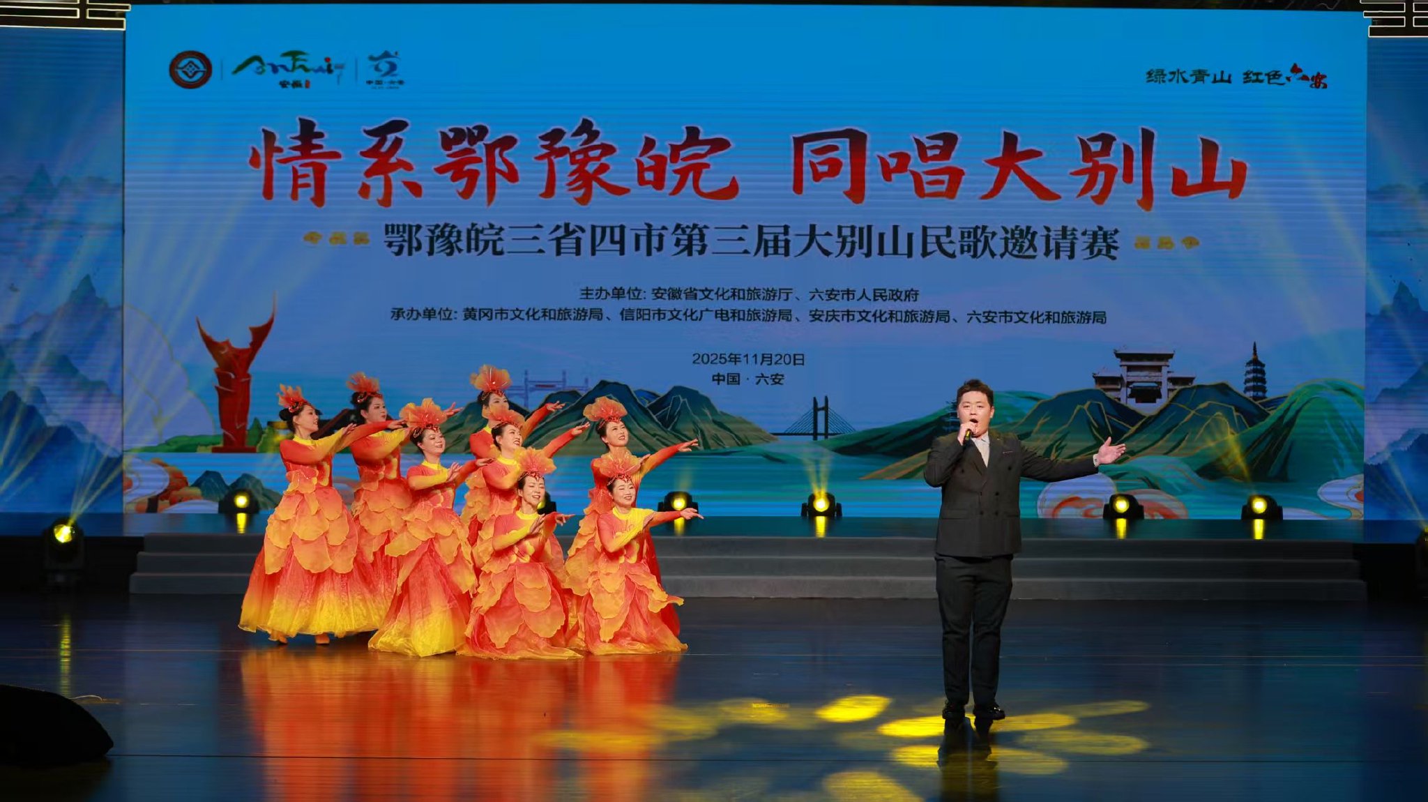 2025年11月20日晚,六安市文化馆红剧场内掌声如潮,歌声回荡。随着最后一个红色创意策划作品的精彩呈现,2025鄂豫皖三省四市第三届大别山民歌邀请赛暨安徽大别山红色旅游创意策划大赛颁奖典礼圆满落幕。这场盛会是六安市学习贯彻党的二十届四中全会精神的具体举措,更是打造全国知名红绿交融文旅康养基地的重要抓手。