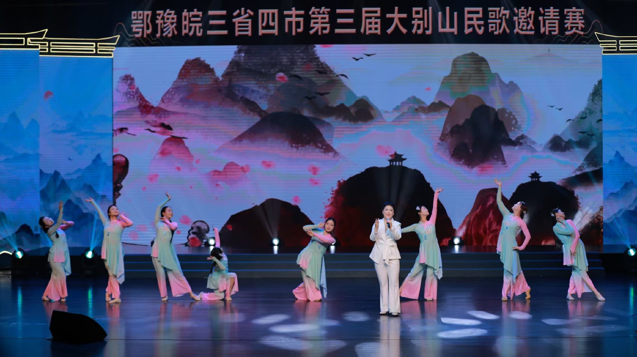 与创意大赛同步举办的第三届大别山民歌邀请赛汇聚鄂豫皖三省四市14首经典民歌,从欢快灵动的《九姐妹赛花灯》到激昂豪迈的《放哨歌》,从清新质朴的《游春》到情意绵长的《隔山恋歌》,一首首承载着历史记忆与地域情感的民歌,在新时代的舞台上焕发勃勃生机。信阳、黄冈、安庆、六安四地文化馆联袂演出,不仅展现了非遗传承的活力,更凸显了大别山区域文化协同的广度与深度。