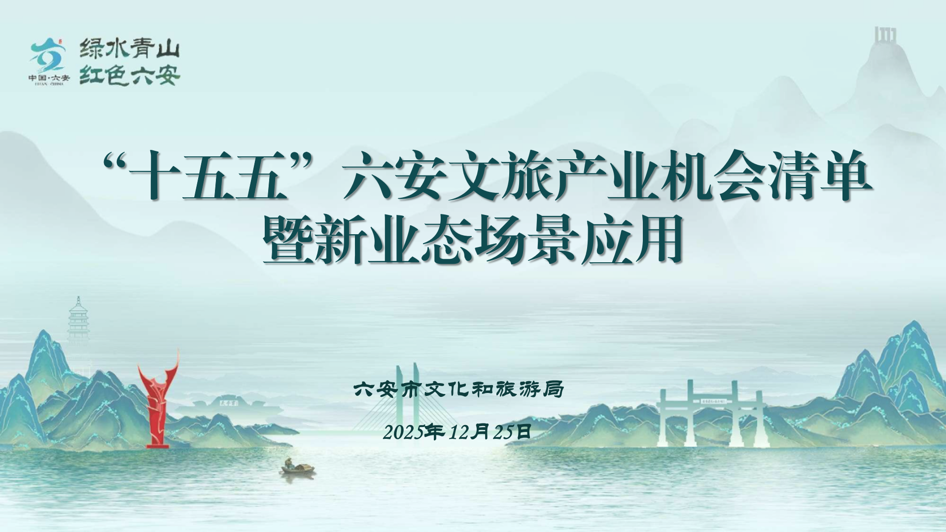 关注为深入贯彻落实党的二十届四中全会精神,构建现代产业体系,把文化旅游业打造成支柱产业,近日,《六安市“十五五”文旅产业机会清单暨新业态应用场景》(以下简称《清单》)正式发布。时值“十四五”收官、“十五五”谋篇开局的关键节点,这份《清单》的发布正当其时,不仅承接了“十四五”期间文旅产业的发展成果,更精准对接了“十五五”文旅发展的核心需求,为六安文旅产业高质量发展注入强劲动能。