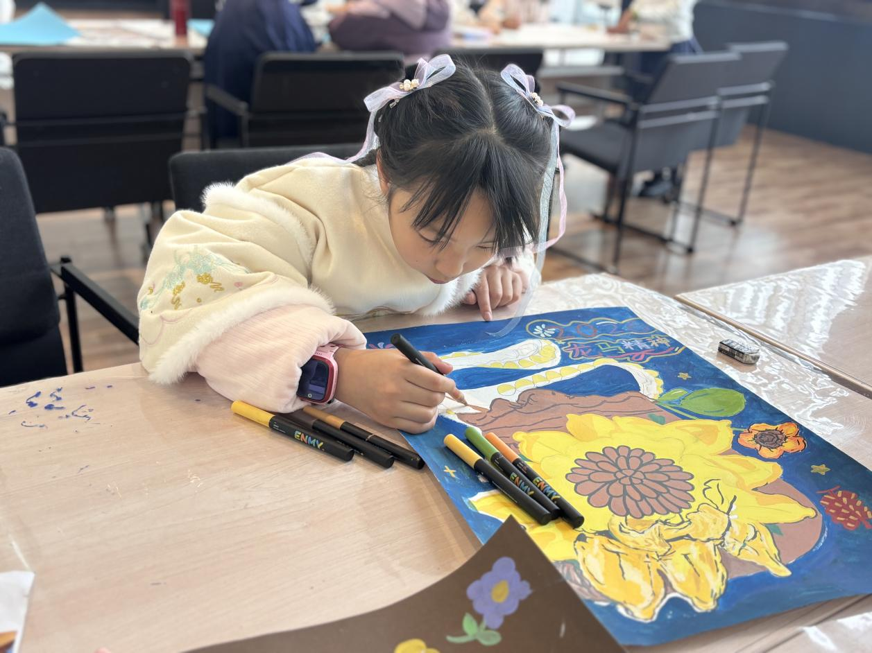 这不是一幅“命题作文”,而是四十个独立梦想的陈列长廊。每个孩子拥有自己的一片“领地”,俯身,沉浸,开始构建独属于他的2026。有的画下太空家园,有的勾勒出会飞的鱼,还有的将彩虹铺满了整条街道……原本空白的画卷,逐渐被童真与未来的斑斓想象填满。那份专注与喜悦,成了新年最初、最动人的风景。