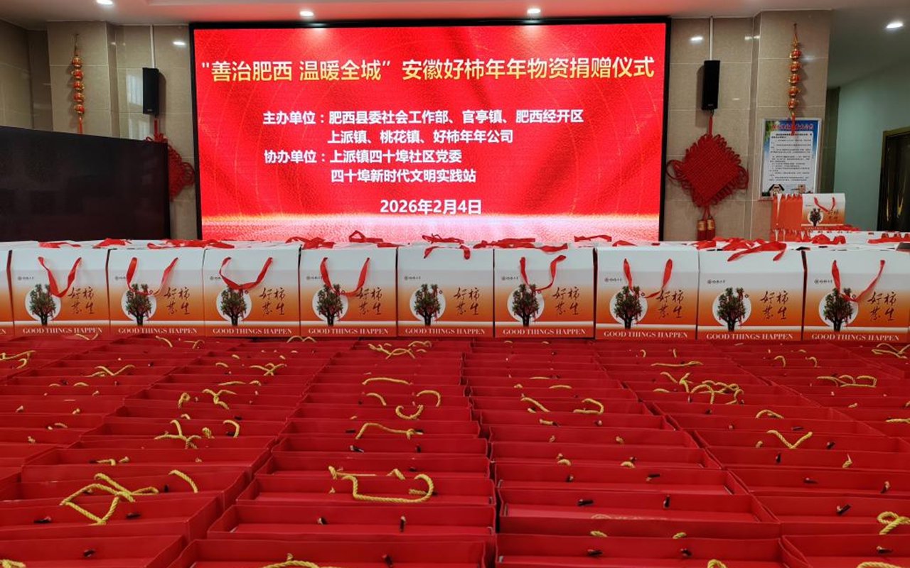 此次新春公益捐赠,既是“好柿年年”反哺社会的暖心举措,也是肥西县本土企业助力民生改善、推动乡村振兴的一个缩影。未来“好柿年年”将继续坚守初心,深耕农创产业,持续践行社会责任,将企业发展与地方民生、乡村振兴紧密结合,以产业赋能、公益暖心,为“善治肥西”建设贡献更多力量,让甜柿的香甜浸润千家万户,让爱心与温暖在肥西大地持续传递。