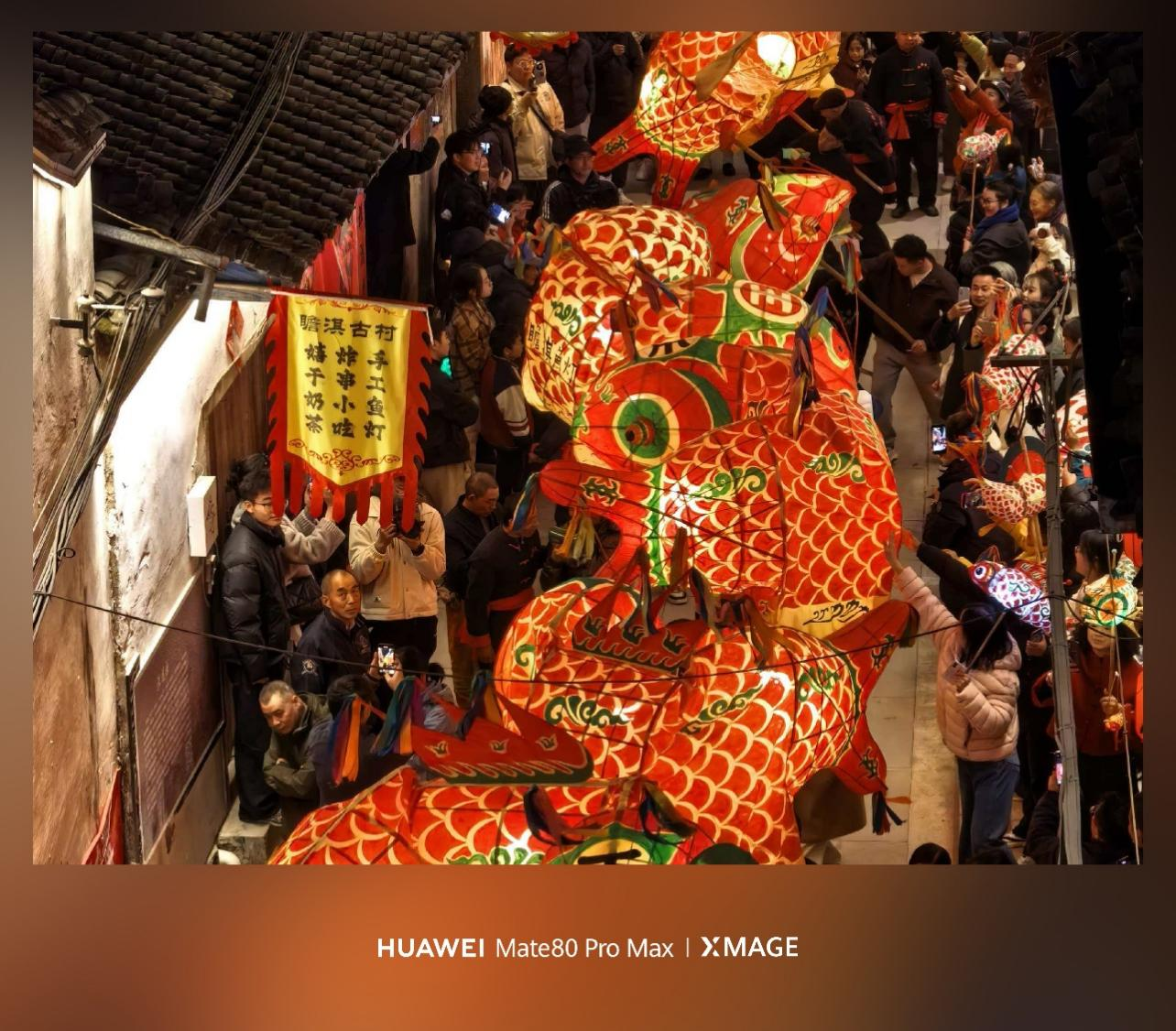 华为Mate 80系列以第二代红枫影像为核心记录载体,全程捕捉细节,精准还原鱼灯色彩质感与巡游热闹氛围,既凸显专业级影像实力,更达成“个人情怀+科技新‘技’艺 + 非遗 IP”的三方共振,推动非遗传播从“被动宣传” 走向“主动焕新传播”。这一联动不仅强化了华为的品牌温度,更依托华为Mate 80系列的用户基础与传播力,为徽州鱼灯IP积累破圈势能,拓宽非遗的传播边界,彰显华为以终端影像技术赋能在地文化传承、助力非遗焕新的责任与担当。