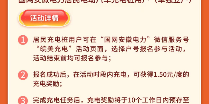 活动对象:国网安徽电力居民 电动汽车充电桩用户(单独立户)