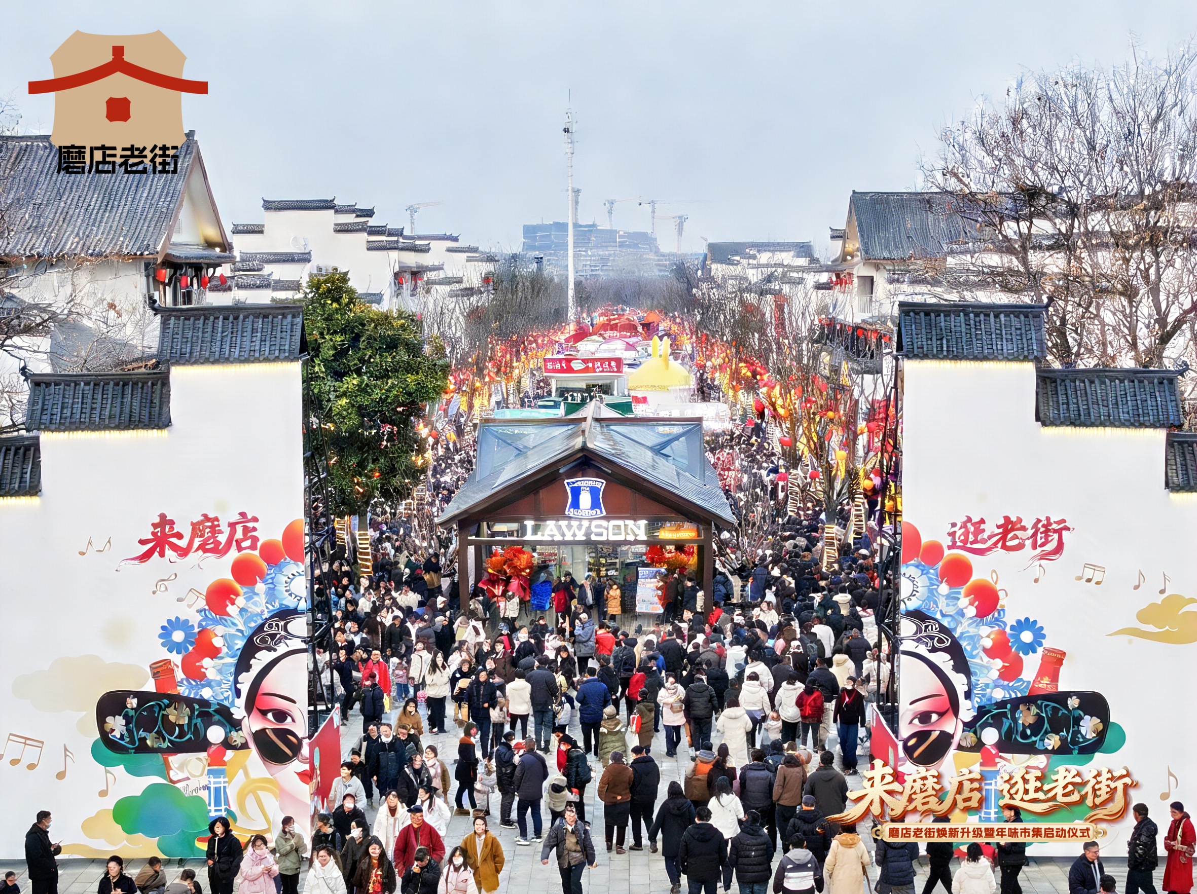 关注青石板路焕新颜,徽派老街迎新春。2026年新春佳节前夕,合肥磨店老街(北街) 完成升级改造正式开街,以“老味传承、新潮共生”为定位,打造集徽派文化、非遗体验、潮玩互动、年味市集于一体的城市文旅新地标。开街盛典特邀安徽知名主持人周莹担纲主持,人气网红NPC越今朝、布鲁云惊喜亮相,与市民游客共赴一场古今交融的文化盛宴。