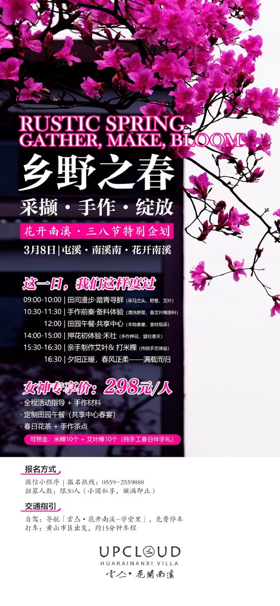 而我们,想邀你在这个属于女神的节日里,暂别城市的喧嚣,来花开南溪,赴一场与春天的约会。