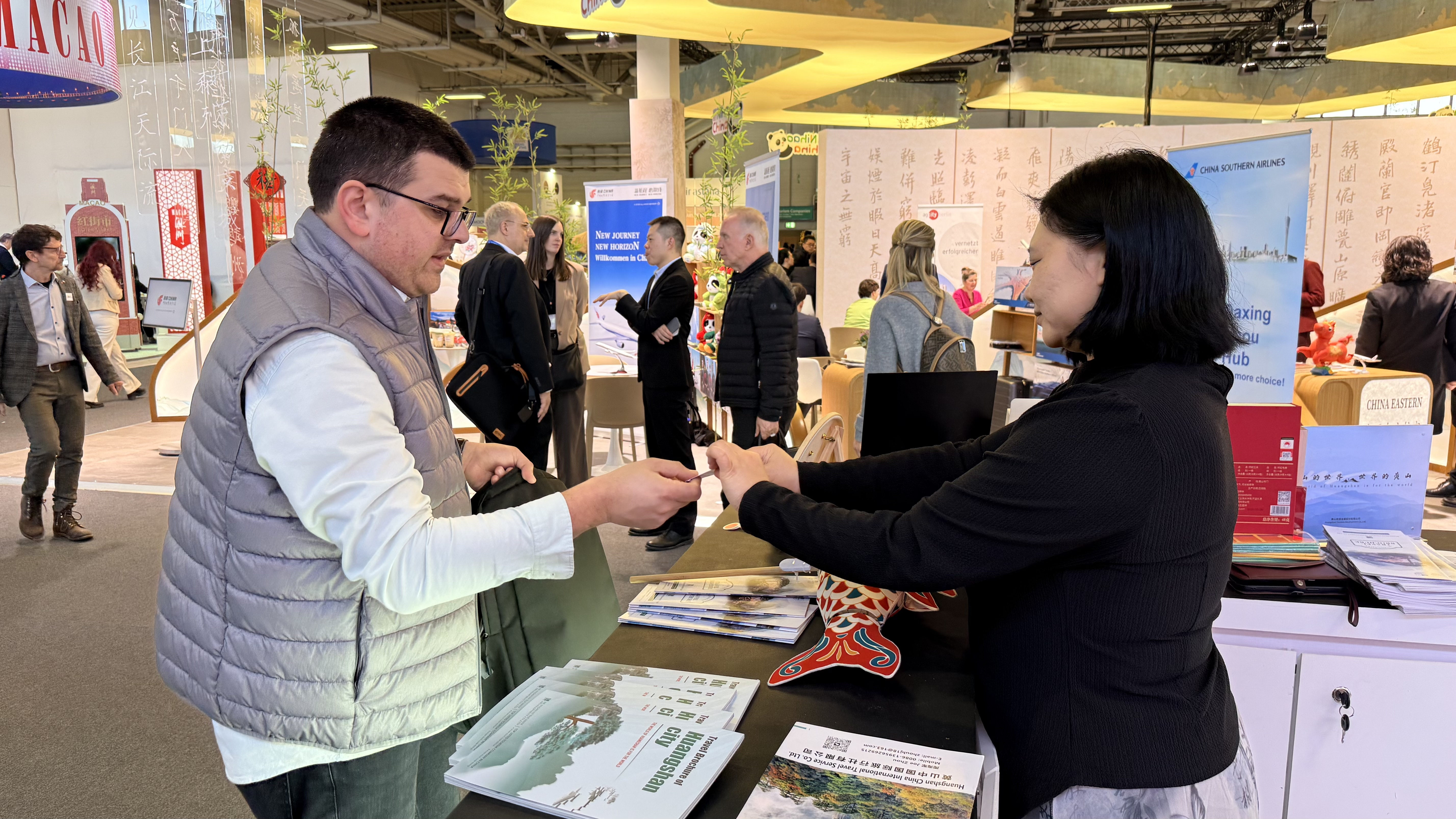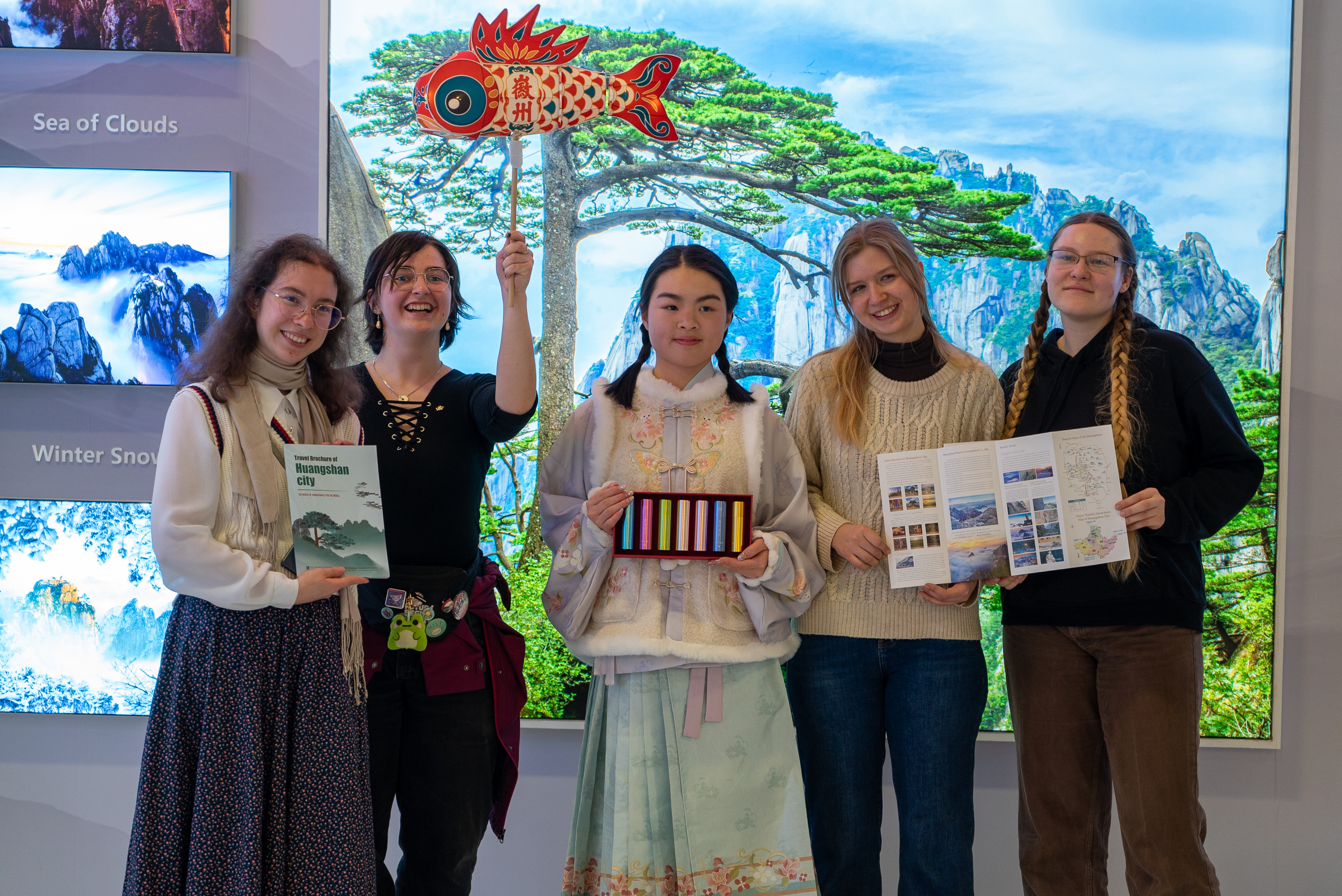 在现场,黄山工作人员化身文化使者,不仅展示了这一传承数百年的非遗项目,更邀请国际友人亲手体验舞动鱼灯。当火红热烈的鱼灯在国际友人手中“游动”起来,他们难以置信自己远隔重洋竟也能感受到别具风格的中国传统文化。展台一侧,循环播放的黄山德语宣传片也吸引了众多目光,片中四季流转的绝美风光让观众仿佛身临其境,不少人在看完宣传片后,对黄山之行更添向往。