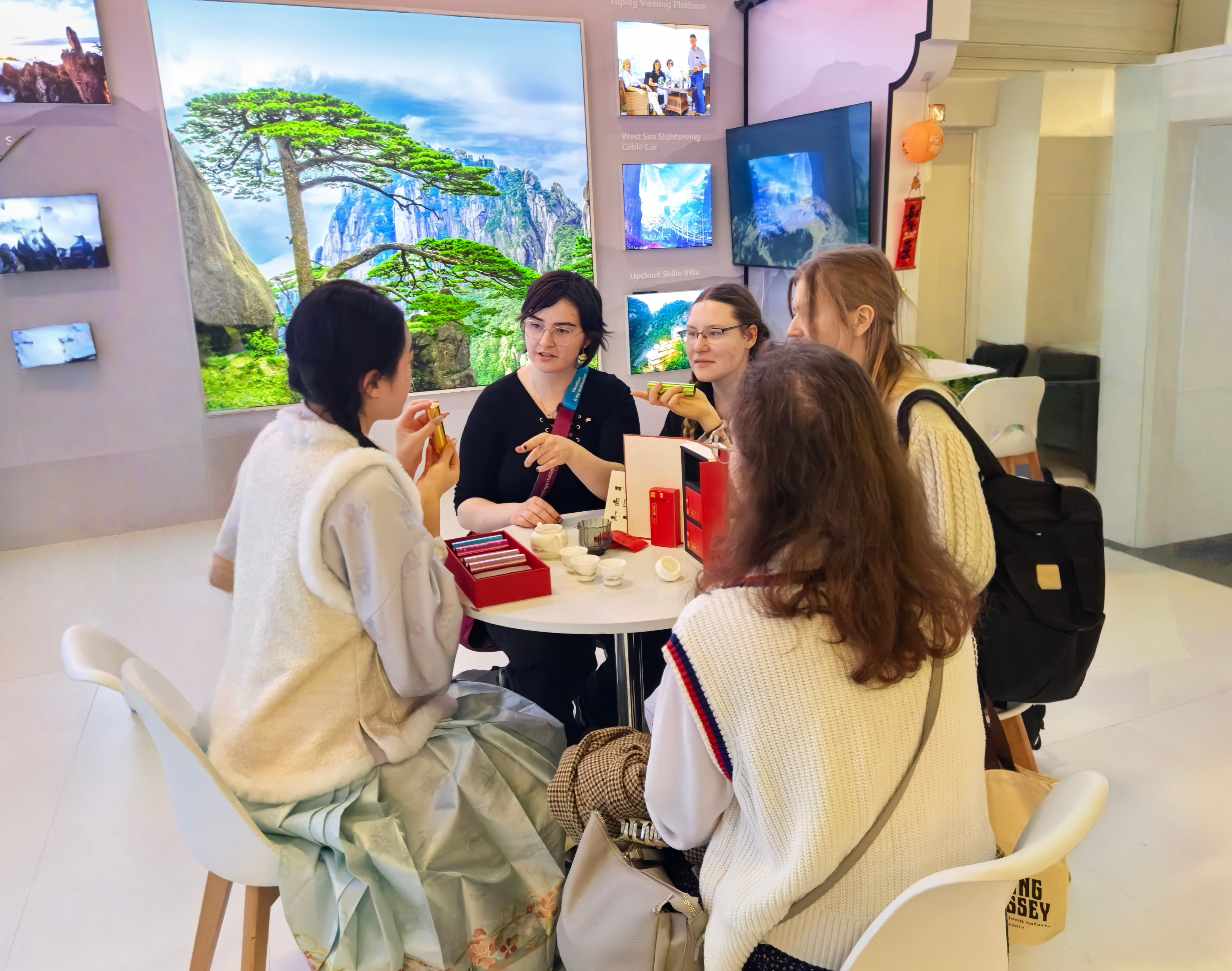 与此同时,展台一侧的品茶区也吸引了许多嘉宾及游客驻足。来自黄山的祁门红茶,以其独特的“祁门香”俘获了各国友人的味蕾,大家在茶香中品味来自东方的温暖与雅致。