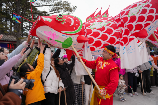 来自广州的游客陈先生感叹:“之前听说过徽州鱼灯,今天在山顶亲眼所见,像真的鱼儿在游,孩子还亲手摸了摸鱼灯的竹骨,非遗一下子就有了温度。”这份徽州传承千年的匠心与智慧,在春日山巅焕发出全新的生命力。