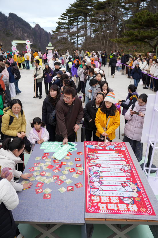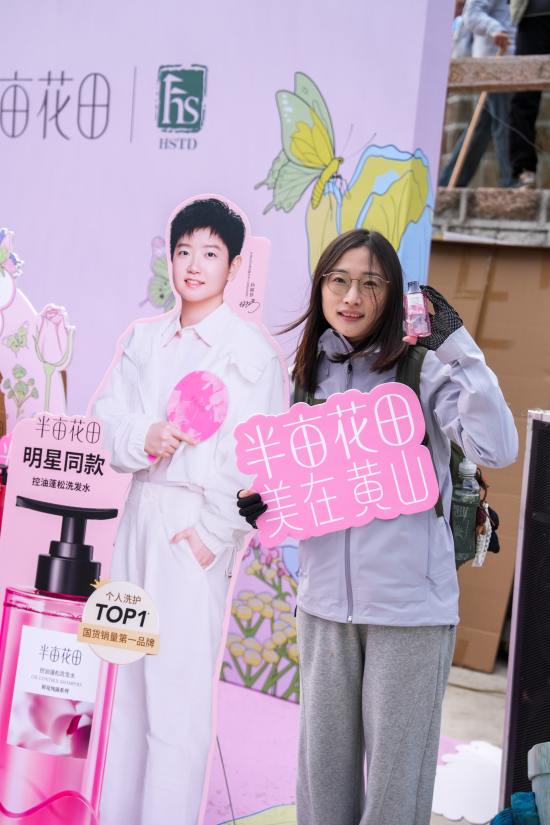 春天的黄山,不仅好看,更好“逛”。本次活动特别携手国货美妆品牌半亩花田,在山顶打造了春日限定的互动体验空间。游客们纷纷在精心布置的打卡点前留影,参与产品体验并收获一份来自山野的春日礼赠。这一跨界合作,将黄山的自然之美与生活方式消费巧妙结合,让旅行不再只是走马观花,而成为一场关乎自我关怀与情绪价值的深度体验。