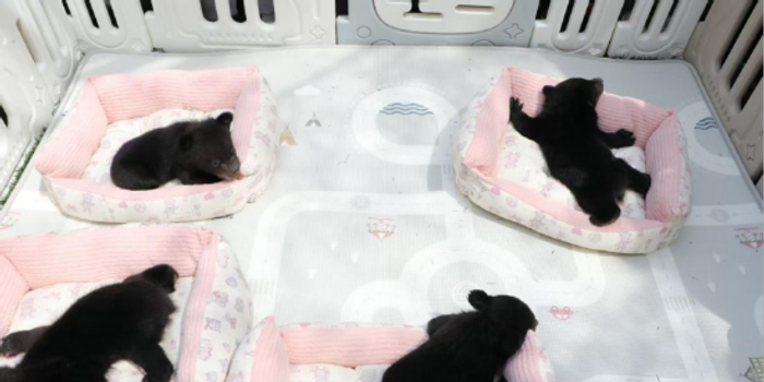 据了解,这些黑熊都是今年1月出生的,老大7号,老二10号,剩下的两小只是12号出生的,还都是名副其实的“熊孩子”。