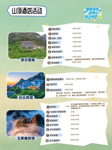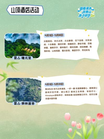 关注错过上一波春假免票?与“李白”“徐霞客”擦肩而过?研学护照尚未领取?别着急——黄山旅游“跟着课本游黄山·亲子研学GO”第二期线下活动将于4月28日至30日限时返场啦!