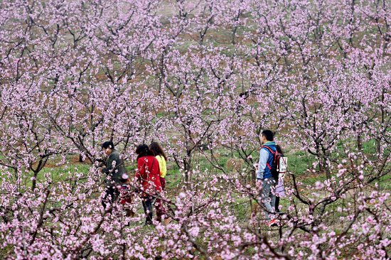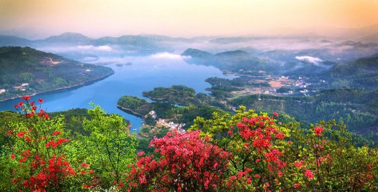 从山间枝头的浪漫玉兰,到深山幽谷的映山红遍,从九十里山水画廊的灼灼桃花,到乡村田园的金色油菜花海,一步一景,满目芳菲。